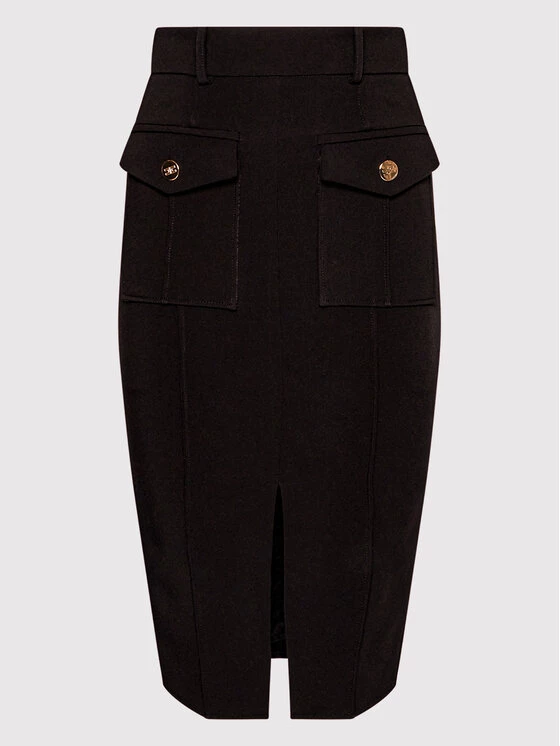 Elisabetta Franchi Γυναίκες Φούστες Pencil Φούστα από απομίμηση δέρματος GO-465-16E2-V320 Μαύρο Slim Fit