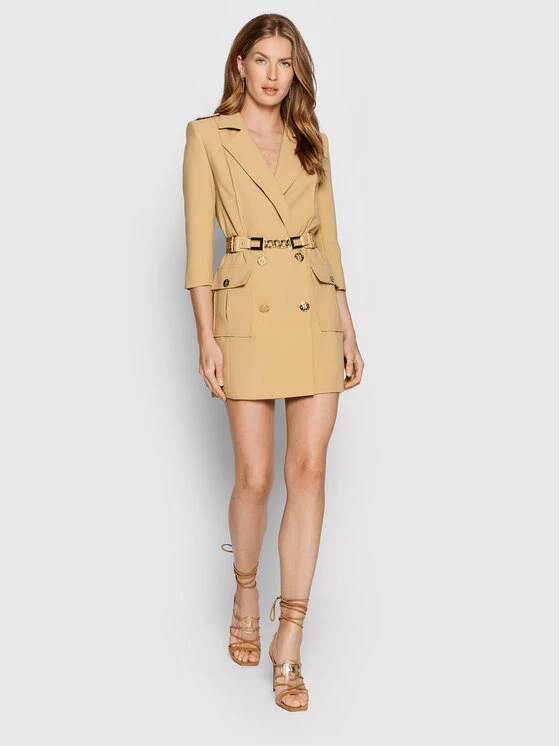Elisabetta Franchi Γυναίκες Πλεκτά Φορέματα Φόρεμα υφασμάτινο AM-65T-26E2-V550 Μπεζ Slim Fit
