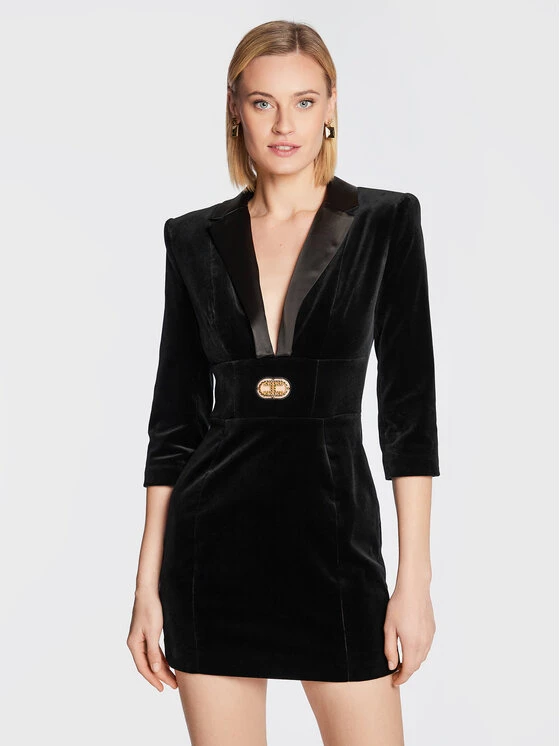 Elisabetta Franchi Γυναίκες Κοκτέιλ Φορέματα Φόρεμα κοκτέιλ AB-226-27E2-V640 Μαύρο Slim Fit