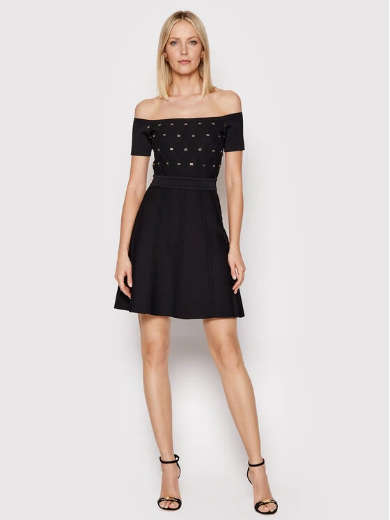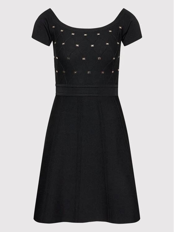 Elisabetta Franchi Γυναίκες Πλεκτά Φορέματα Φόρεμα υφασμάτινο AM-39S-26E2-V500 Μαύρο Slim Fit