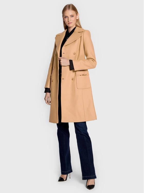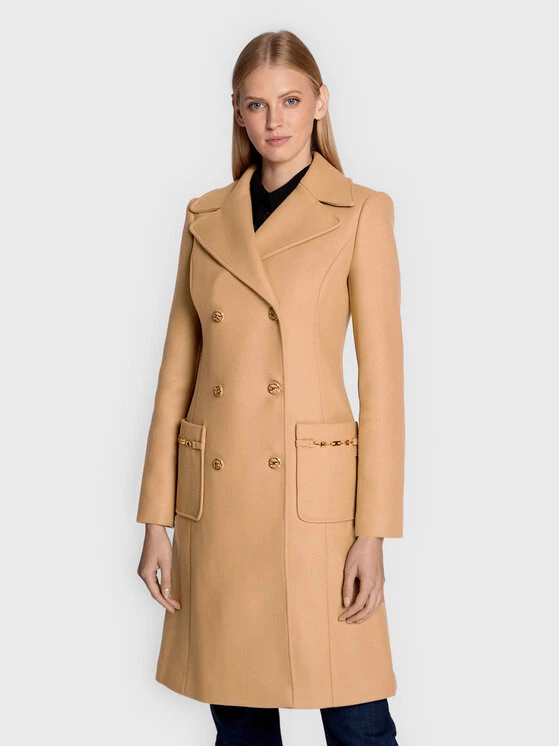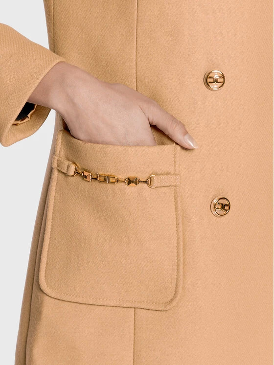 Elisabetta Franchi Γυναίκες Μεταβατικά Παλτά Μάλλινο παλτό CP-002-26E2-V800 Μπεζ Regular Fit