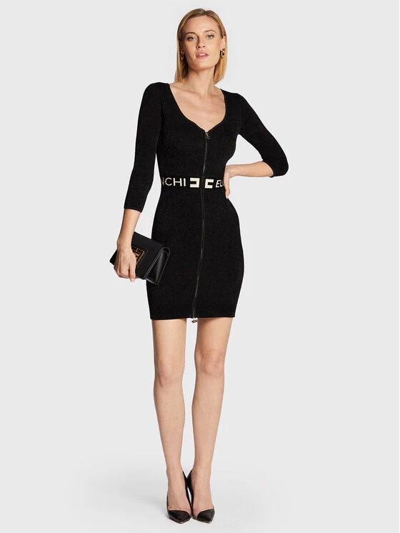 Elisabetta Franchi Γυναίκες Πλεκτά Φορέματα Φόρεμα υφασμάτινο AM-37S-26E2-V370 Μαύρο Slim Fit