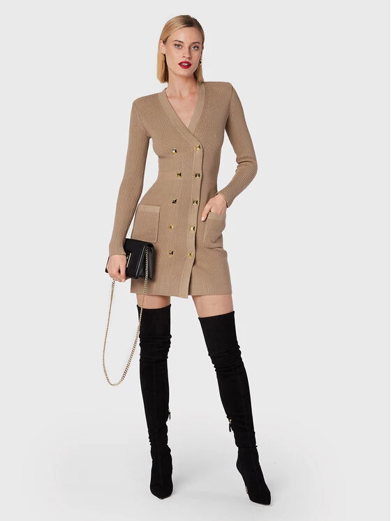 Elisabetta Franchi Γυναίκες Πλεκτά Φορέματα Φόρεμα υφασμάτινο AM-39S-26E2-V500 Μπεζ Slim Fit