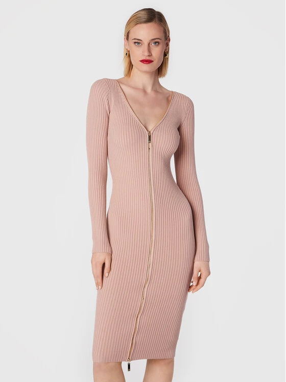 Elisabetta Franchi Γυναίκες Πλεκτά Φορέματα Φόρεμα υφασμάτινο AM-51T-26E2-V520 Μπεζ Slim Fit