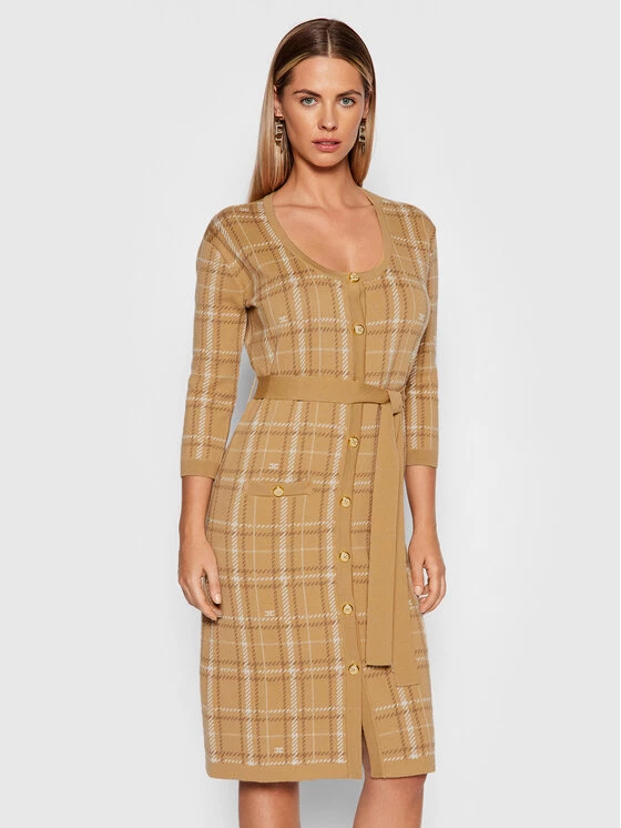 Elisabetta Franchi Γυναίκες Πλεκτά Φορέματα Φόρεμα υφασμάτινο AM-62A-16E2-V550 Καφέ Slim Fit