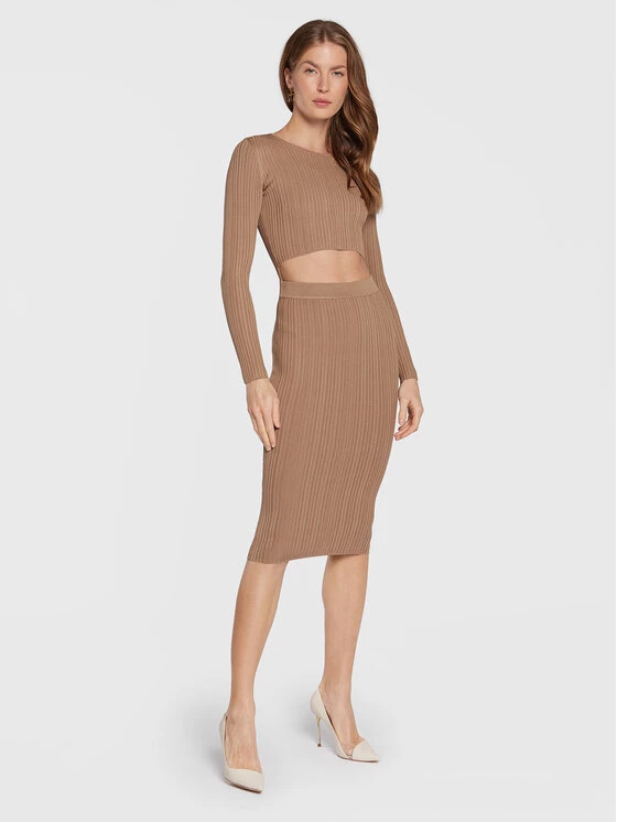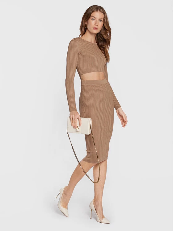 Elisabetta Franchi Γυναίκες Πλεκτά Φορέματα Φόρεμα υφασμάτινο AM-83S-27E2-V390 Καφέ Slim Fit