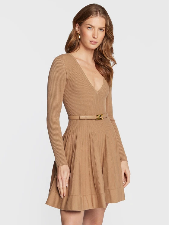 Elisabetta Franchi Γυναίκες Πλεκτά Φορέματα Φόρεμα υφασμάτινο AM-90T-26E2-V600 Καφέ Regular Fit