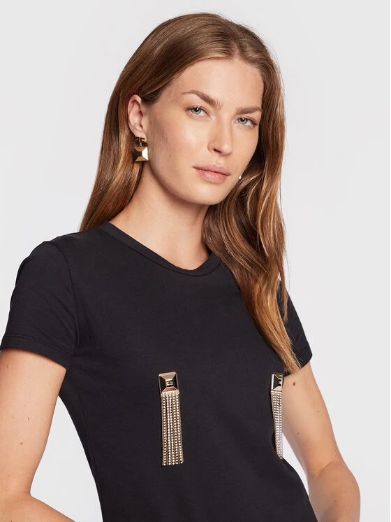 Elisabetta Franchi Γυναίκες T-shirts T-Shirt MA-011-26E2-V190 Μαύρο Slim Fit