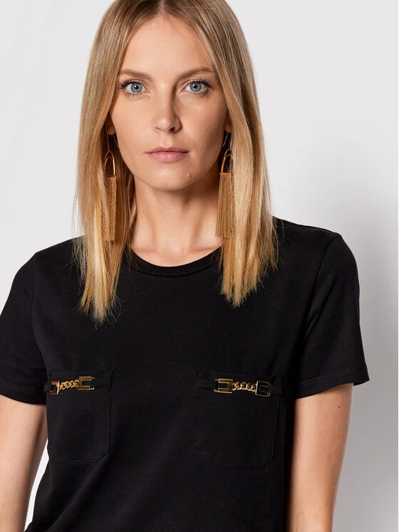 Elisabetta Franchi Γυναίκες T-shirts T-Shirt MA-016-26E2-V160 Μαύρο Regular Fit