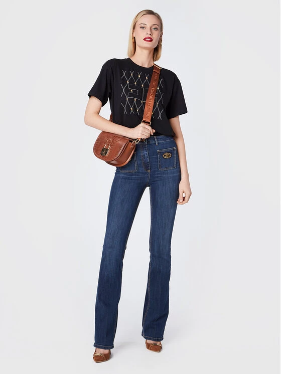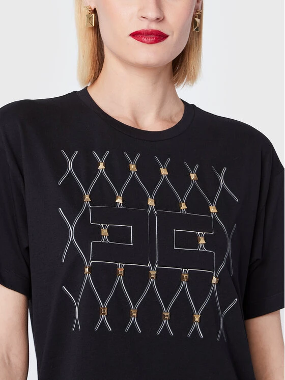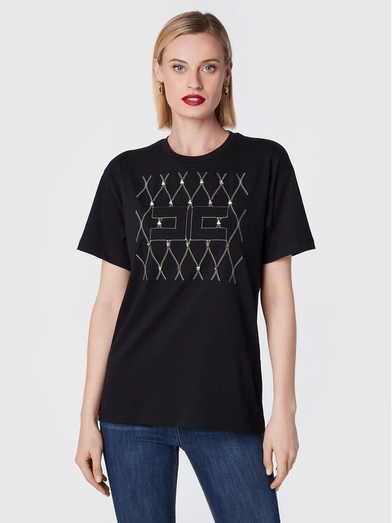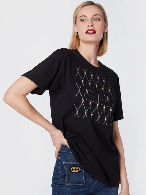 Elisabetta Franchi Γυναίκες T-shirts T-Shirt MA-018-26E2-V190 Μαύρο Regular Fit