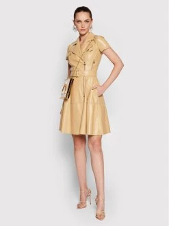 Elisabetta Franchi Γυναίκες Δερμάτινα Φορέματα Φόρεμα από απομίμηση δέρματος AB-077-21E2-V540 Μπεζ Slim Fit