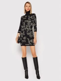 Elisabetta Franchi Γυναίκες Πλεκτά Φορέματα Φόρεμα υφασμάτινο AM-65T-26E2-V550 Μαύρο Slim Fit