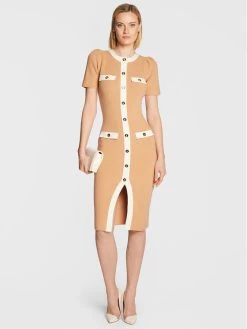 Elisabetta Franchi Γυναίκες Πλεκτά Φορέματα Φόρεμα υφασμάτινο AM-65T-26E2-V550 Μπεζ Slim Fit